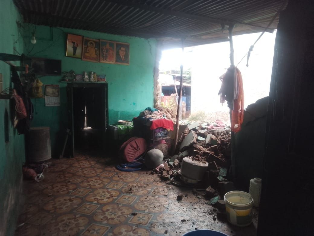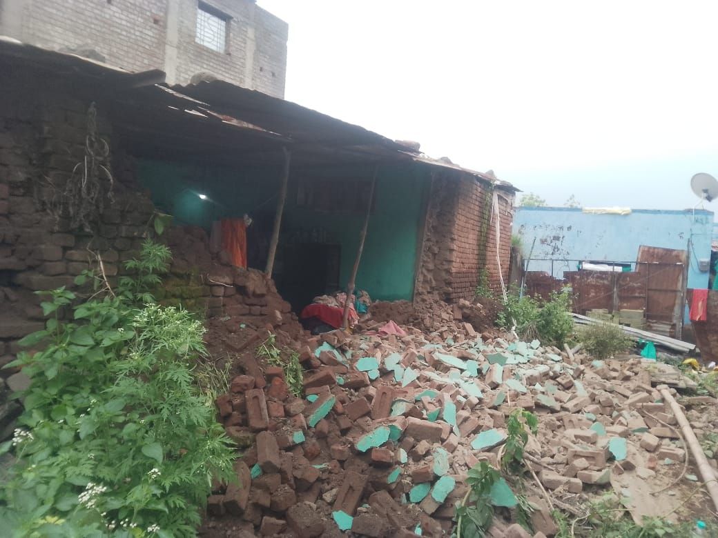 पावसामुळे भिंत कोसळल्याने एका गरीब कुटुंबाचे नुकसान झाले आहे.