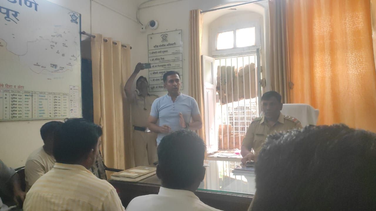 त्रपती संभाजी नगर प्रतिनिधी संतोष गर्दे फर्दापुर पुलिस स्टेशन येथे नवरात्र उत्सव या निमिताने, शांतता कमेटीची, बैठक घेण्यात आले फर्दापुर पोलीस स्टेशनचे सहाय्यक पोलीस निरीक्षक प्रफुल्ल साबळे , चे मार्गदर्शन खाली पार पडली सर्व खेड़ा गावातील नवदुर्गा मंडल व,सरपंच उप सरपंच व पुलिस पाटिल गावकरीया शांतंता,कमेटी बैठकला हजार होते, , पोलीस उपनिरीक्षक पाटील, विनोद कोळी लोक प्रशन पत्रकार सलीम कुरेशी व जि एस नाईन न्यूज के पत्रकार कृष्णा मोरे उपस्थित होते। या बैठकीत डीजी मुक्त यांनाही सांगण्यात आले. सहाय्यक पोलीस निरीक्षक प्रफुल साबळे यानी, मार्गदर्शन , केले कायदेचे पूर्ण पालन करावे, इसी समय फ़र्दापुर के, शिवाजी बावस्कर, ग्रां.सदस्य फेरोज पठान ,सहित सर्व छोटे मोठे गावातील नवदुर्गा मंडल व,सरपंच उप सरपंच व गावकरी या शांतंता,कमेटी बैठकला उपस्थित होते,