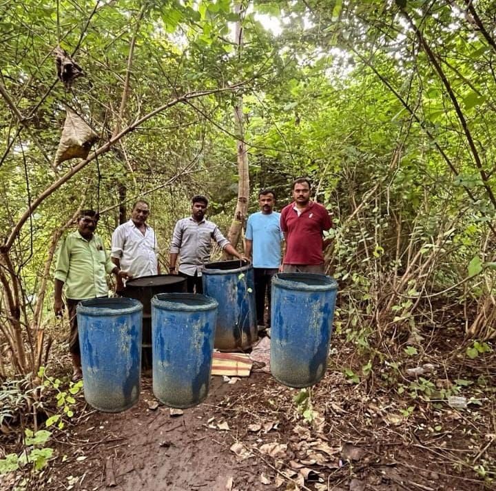 किमतीचे 200 लिटर क्षमतेच्या पूर्ण क्षमतेने भरलेल्या निळ्या रंगाच्या 04 टाक्यांमध्ये 800 लिटर गावठी हातभट्टी दारु तयार करण्याचे रसायन प्रति लिटर 80/- रु दराने