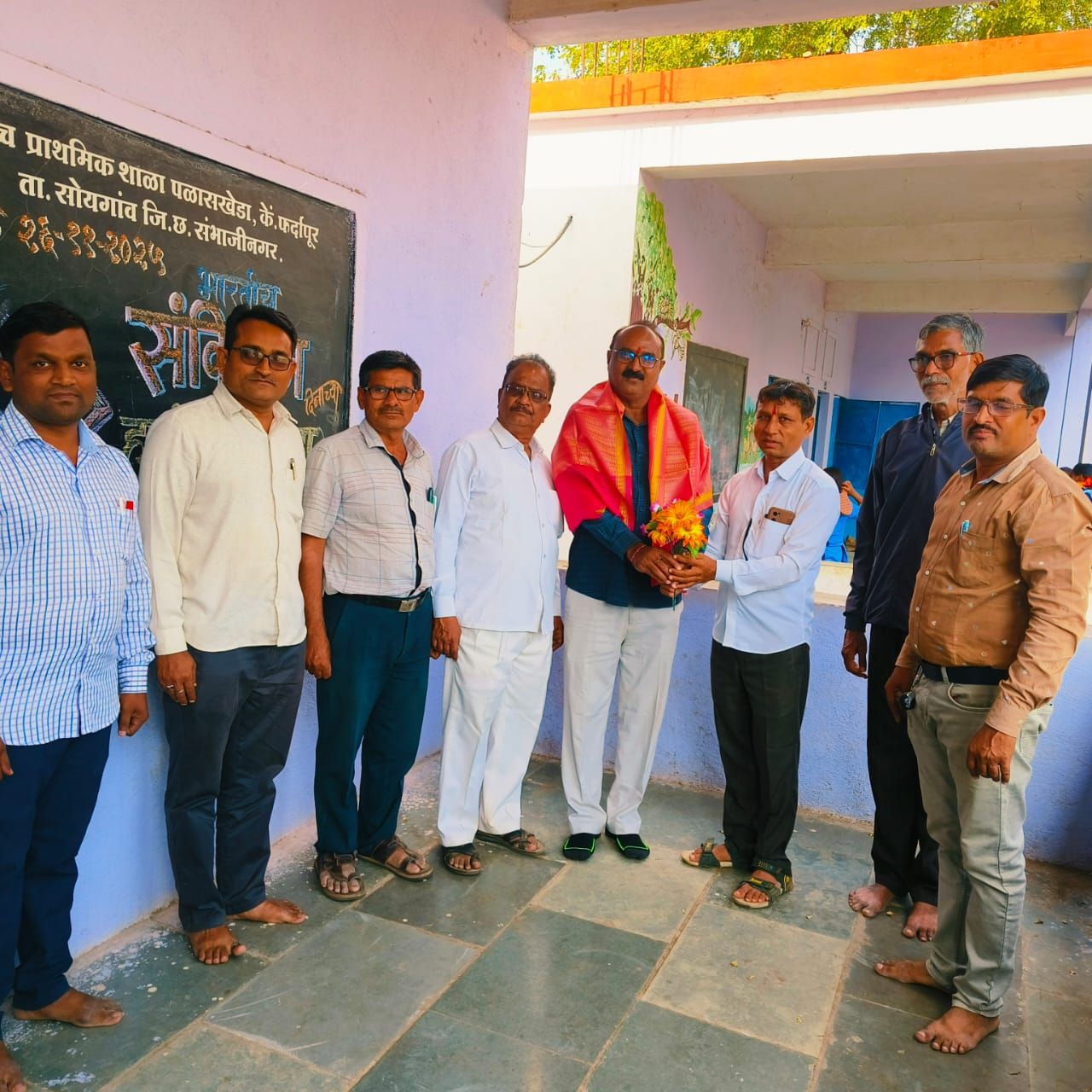 विद्यार्थ्यांच्या या उदार देणगीमुळे शाळेतील क्रीडा विभागाला मोठी चालना मिळणार असून विद्यार्थ्यांमध्ये क्रीडा संस्कार अधिक बळकट होणार आहेत. सर्वांगीण प्रगतीसाठी नेहमीच पुढाकार घेणाऱ्या या दोन्ही मान्यवरांच्या उपस्थितीमुळे संपूर्ण शाळा प्रांगण उत्साहाने भरून गेले.शाळेच्या विकासातील त्यांच्या योगदानाची दखल घेत शाळेचे नूतन मुख्याध्यापक श्री.अनिल ठाकूर, शिक्षक श्री.अर्जुन पारधे सर यांच्या हस्ते श्रीफळ, शाल आणि पुष्पगुच्छ देऊन सन्मान करण्यात आला *तसेच कार्यक्रमात आणखी एक महत्त्वाचा क्षण म्हणजे* जिल्हा अंतर्गत बदलीने जिल्हा परिषद प्राथमिक शाळा पळसखेडा येथे रुजू झालेले *आदर्श शिक्षक श्री. अनिल ठाकूर सर* यांचे देखील शाल व श्रीफळ देऊन स्वागत करण्यात आले.श्री.ठाकूर सरांच्या आगमनाने शाळा परिवारात आनंदाचे वातावरण निर्माण झाले. मान्यवरांचे मनःपूर्वक आभार शाळेतील शिक्षकवृंद श्री. वासुदेव कोळी सर, श्री. अवधूत सर,कोष्टी सर, श्री. लक्ष्मण सोनवणे सर, श्री.लाठे सर, श्री. जाधव सर, श्री. शेख सर, श्री. कासार सर यांनी मानले.