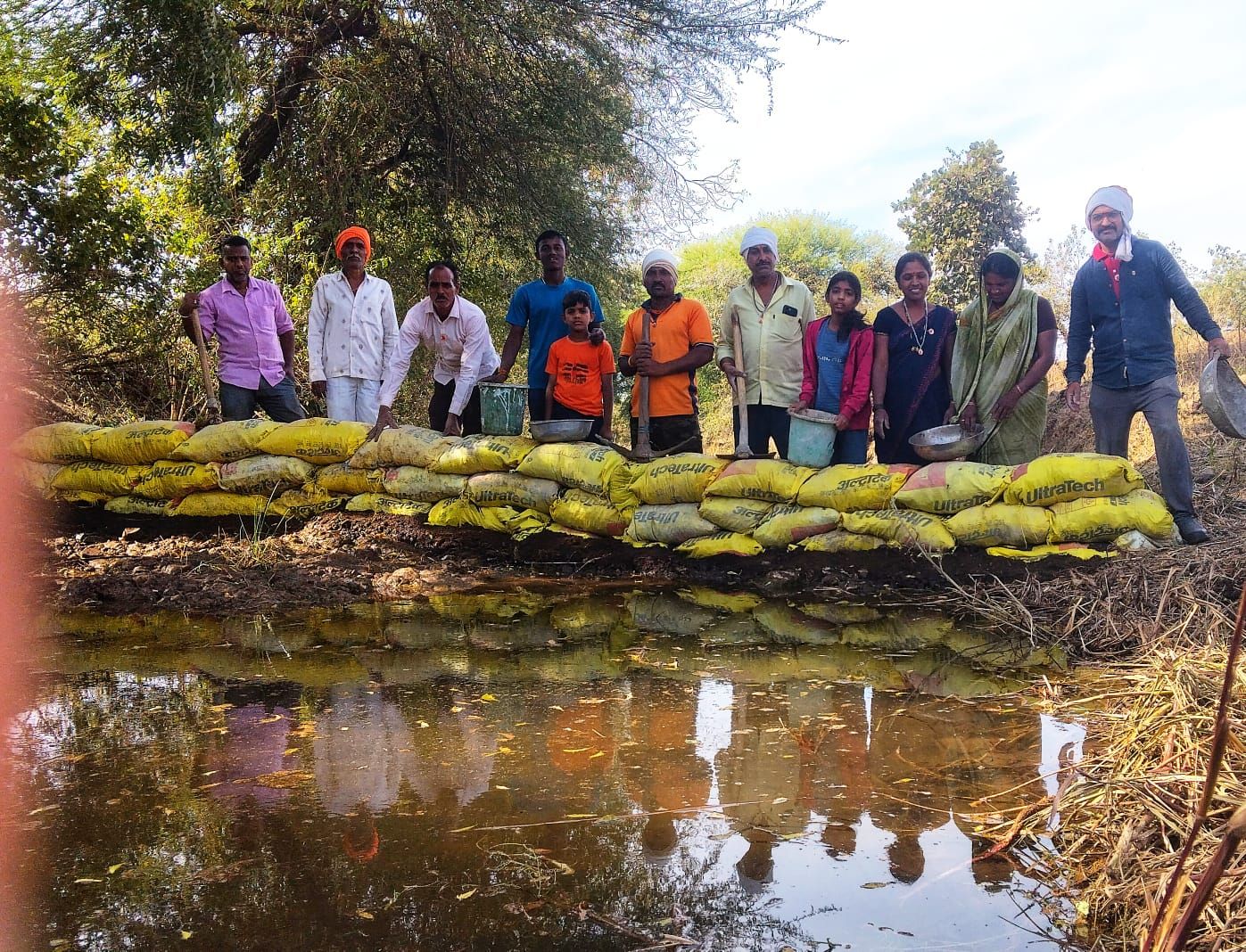 श्रमदानातून बनवला कच्चा बंधारा…..